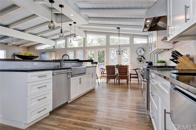 This enchanting 4 bed, 2.5 bath, Cape Cod home in the trees checks all the boxes. Located on a wonderful block, this charmer takes your breath away as you step foot inside. The captivating great room is the first thing you see as you enter, and it functions as a centerpiece for your family's day to day and entertaining. Beautiful, vaulted ceilings draw your attention immediately as you walk into the large living area, beautifully remodeled kitchen and dining space. Just off your fabulous great room is a wonderful deck for grilling and entertaining that is seamlessly accessible. Three bedrooms and three bathrooms (including a wonderful master suite), laundry room all on the main level. The lower level adds a wonderful second living space for those quiet movie nights in or a wonderful space to play, plus just off that living area is a cozy, fourth bedroom and an additional small yard with a second patio. Owners recently added A/C, upgraded the electric panel, freshly painted, and added a half bath off the main living area. Enjoy Manhattan Beach's wonderful