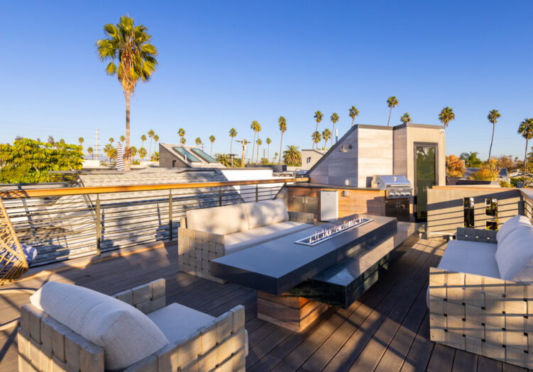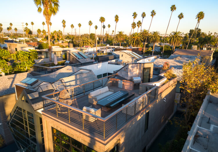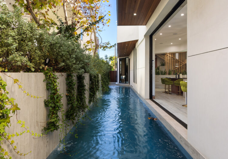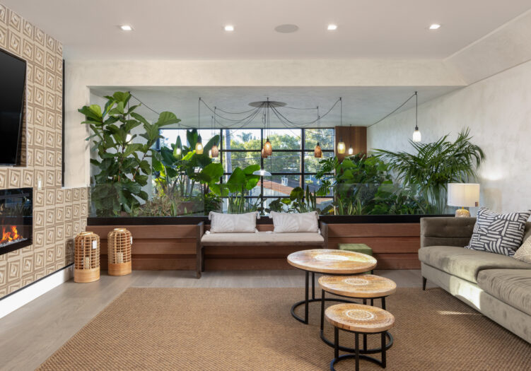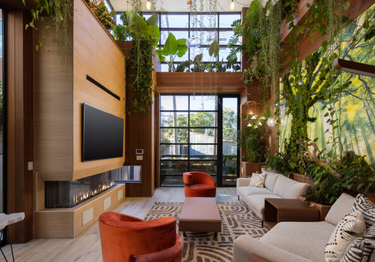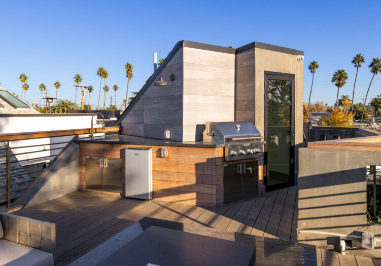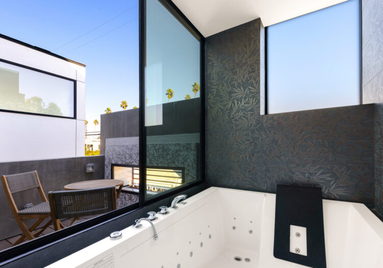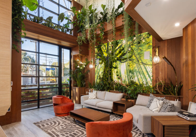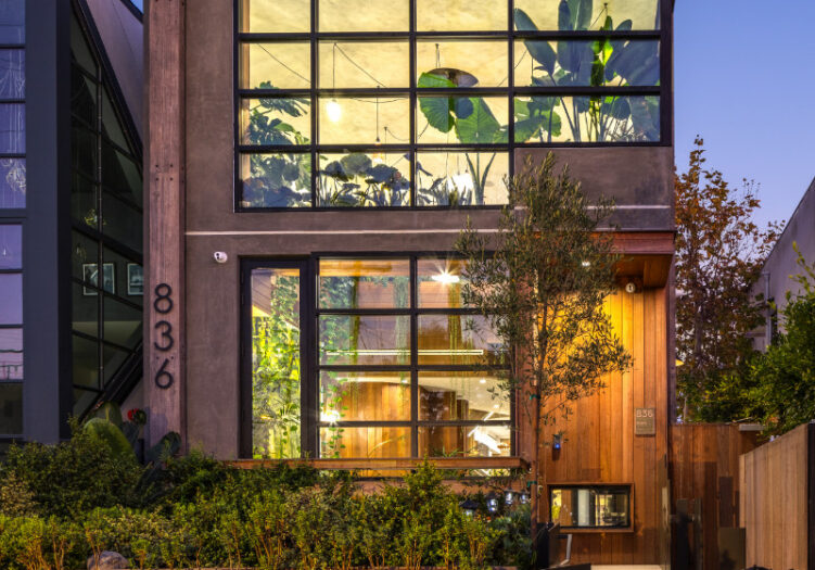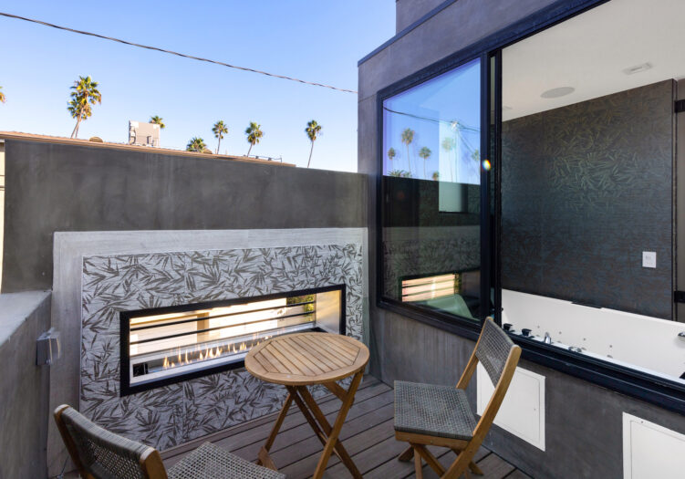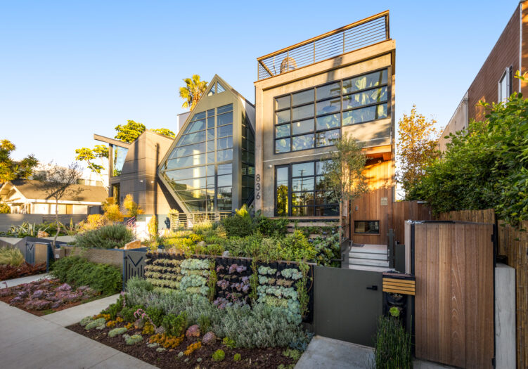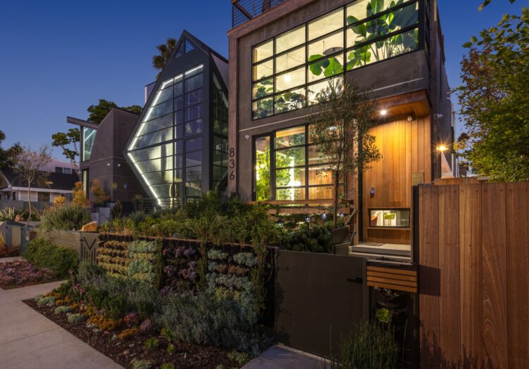 Presenting the iconic "Maya, Lady of Botanica," one of three newly built "Glass Ladies Houses" by acclaimed designer Alon Zakoot. This tropical Tulum-inspired trophy property, has been featured in over fifty publications globally, and is known for its harmonious blend of tropical jungle elements and botanical accents. Step into Maya's realm, where she seamlessly transports you to a world of natural beauty and tranquility. Upon arrival, prepare to be captivated by the grandeur of the towering glass-and-steel entrance, complemented by sloped overhead lines and meticulously curated drought-tolerant flora. The living room features a decadent fireplace, shimmering accent wall, and sliding glass doors that open onto the enchanting patio and walls of glass onlooking the sparkling saltwater pool and spa.The masterfully designed kitchen boasts a double-waterfall island, state-of-the-art appliances, custom cabinetry, and a convenient pass-through to sparkling saltwater pool and spa and the main-level indoor/outdoor lounge, complete with fire pit and additional bar seating. The dining room is adorned with a staircase-turned-art-piece. Ascend to the upper level, where the primary suite awaits, offering a private balcony with stunning views, a floating dual-sink vanity, rainwater shower, separate tub, and a brilliant clerestory window framing vistas of mature palms. The additional bedrooms and bathrooms showcase the finest fixtures and finishes, ensuring a luxurious living experience. Upstairs awaits a stunning rooftop deck with an outdoor kitchen, dining area, lounge furniture and oversized firepit. The rooftop features breathtaking 360-degree views of the cityscape, mountains, downtown Los Angeles and beyond. Descend to the lower level, where a junior primary suite awaits, featuring its own fireplace and an exceptional outdoor living room adorned with a botanical wall and open-air elegance. On this level you will also find a beautiful theater, equipped with a built-in mini bar and blackout shades, as well as an atrium letting in natural elements and light, and an additional guest suite. Maya, Lady of Botanica stands as an extraordinary architectural feat, presenting a rare opportunity to own a slice of tropical Tulum paradise in Silicon Beach. Conveniently located blocks from the best shopping, nightlife and entertainment Venice has to offer on Abbott Kinney and Rose Ave, and moments from the beach, this residence epitomizes a seamless blend of luxury living and Venice lifestyle.