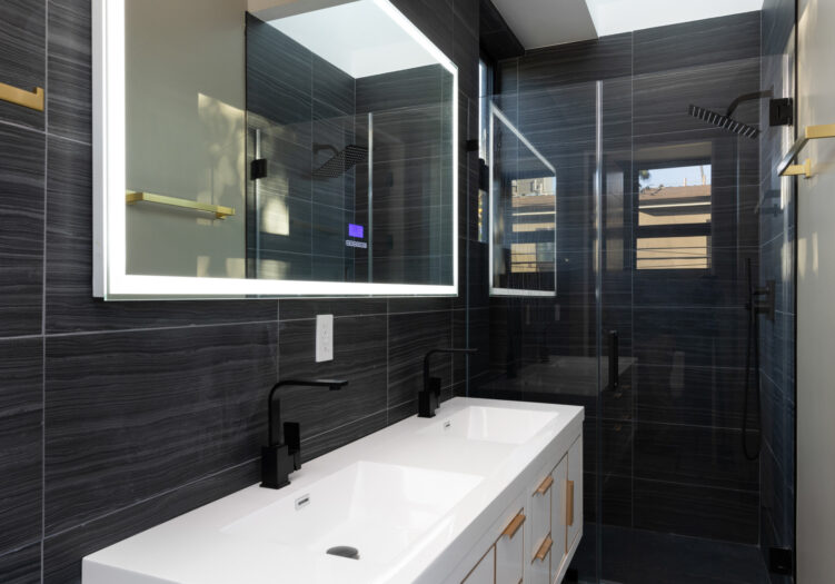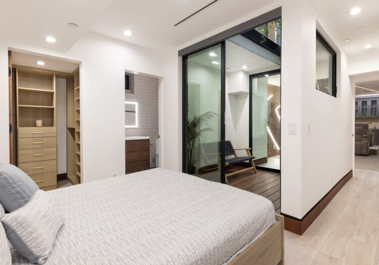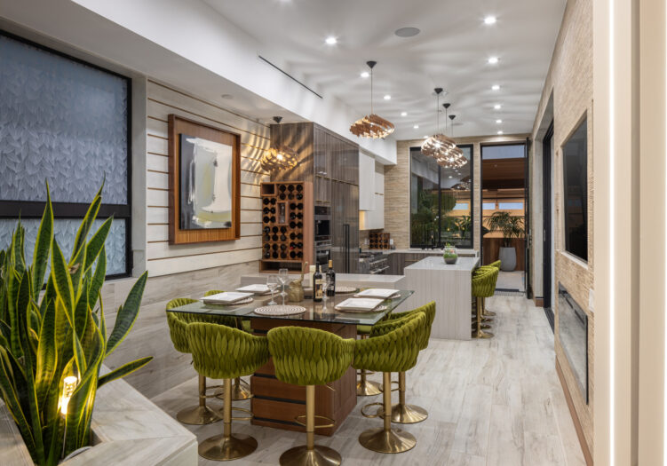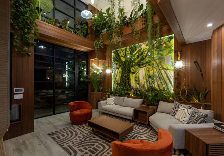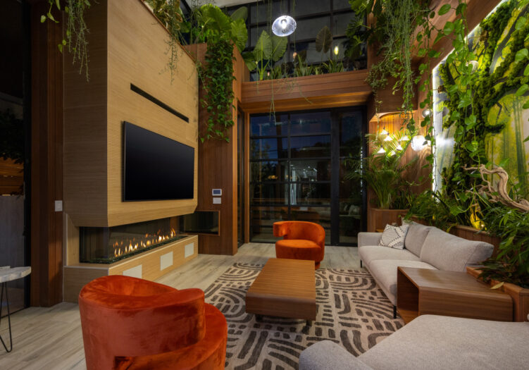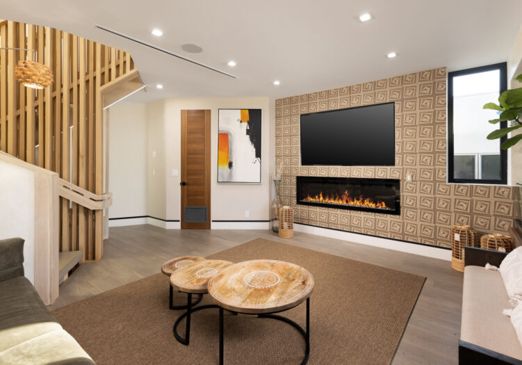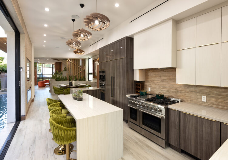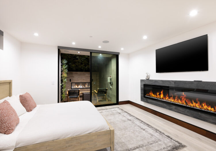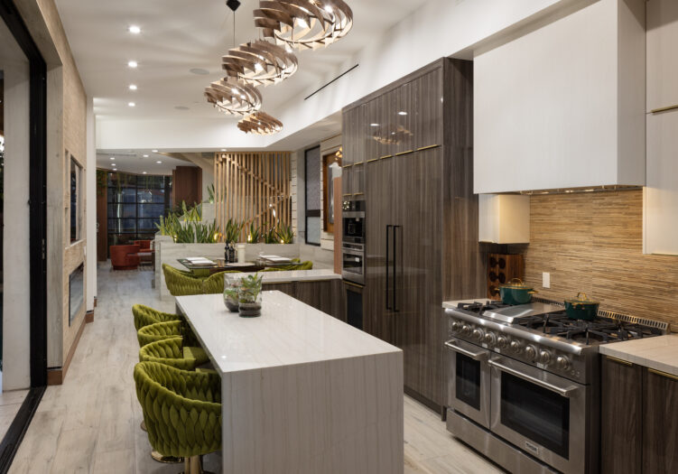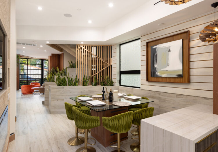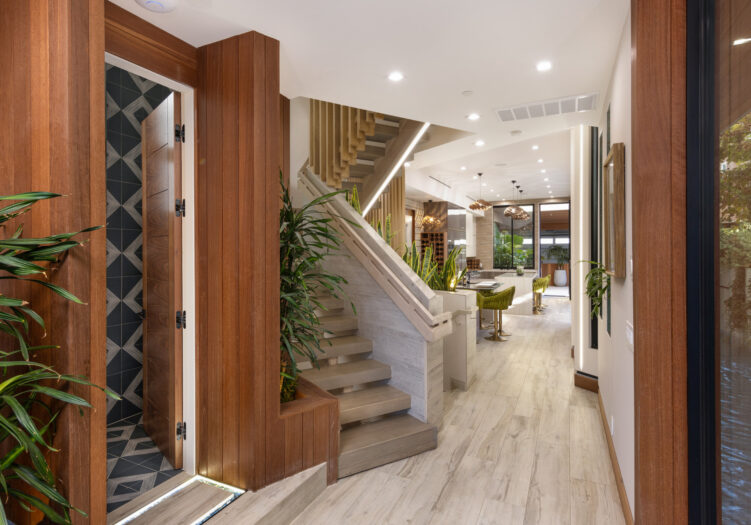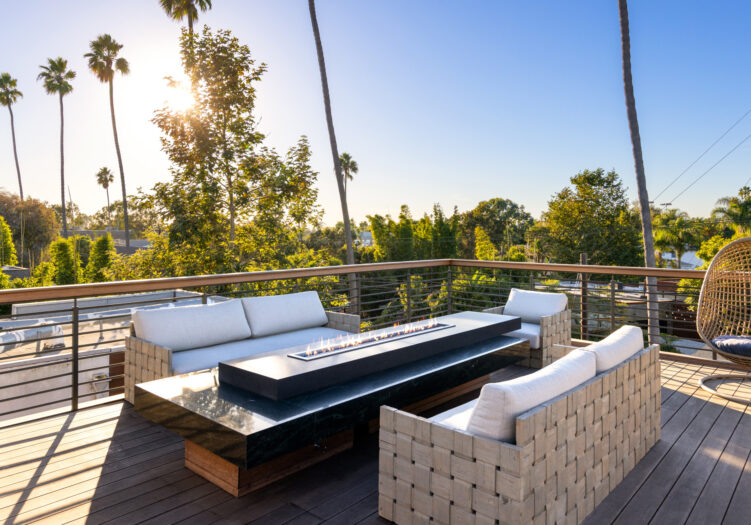 Presenting the iconic "Maya, Lady of Botanica," one of three newly built "Glass Ladies Houses" by acclaimed designer Alon Zakoot. This tropical Tulum-inspired trophy property, has been featured in over fifty publications globally, and is known for its harmonious blend of tropical jungle elements and botanical accents. Step into Maya's realm, where she seamlessly transports you to a world of natural beauty and tranquility. Upon arrival, prepare to be captivated by the grandeur of the towering glass-and-steel entrance, complemented by sloped overhead lines and meticulously curated drought-tolerant flora. The living room features a decadent fireplace, shimmering accent wall, and sliding glass doors that open onto the enchanting patio and walls of glass onlooking the sparkling saltwater pool and spa.The masterfully designed kitchen boasts a double-waterfall island, state-of-the-art appliances, custom cabinetry, and a convenient pass-through to sparkling saltwater pool and spa and the main-level indoor/outdoor lounge, complete with fire pit and additional bar seating. The dining room is adorned with a staircase-turned-art-piece. Ascend to the upper level, where the primary suite awaits, offering a private balcony with stunning views, a floating dual-sink vanity, rainwater shower, separate tub, and a brilliant clerestory window framing vistas of mature palms. The additional bedrooms and bathrooms showcase the finest fixtures and finishes, ensuring a luxurious living experience. Upstairs awaits a stunning rooftop deck with an outdoor kitchen, dining area, lounge furniture and oversized firepit. The rooftop features breathtaking 360-degree views of the cityscape, mountains, downtown Los Angeles and beyond. Descend to the lower level, where a junior primary suite awaits, featuring its own fireplace and an exceptional outdoor living room adorned with a botanical wall and open-air elegance. On this level you will also find a beautiful theater, equipped with a built-in mini bar and blackout shades, as well as an atrium letting in natural elements and light, and an additional guest suite. Maya, Lady of Botanica stands as an extraordinary architectural feat, presenting a rare opportunity to own a slice of tropical Tulum paradise in Silicon Beach. Conveniently located blocks from the best shopping, nightlife and entertainment Venice has to offer on Abbott Kinney and Rose Ave, and moments from the beach, this residence epitomizes a seamless blend of luxury living and Venice lifestyle.