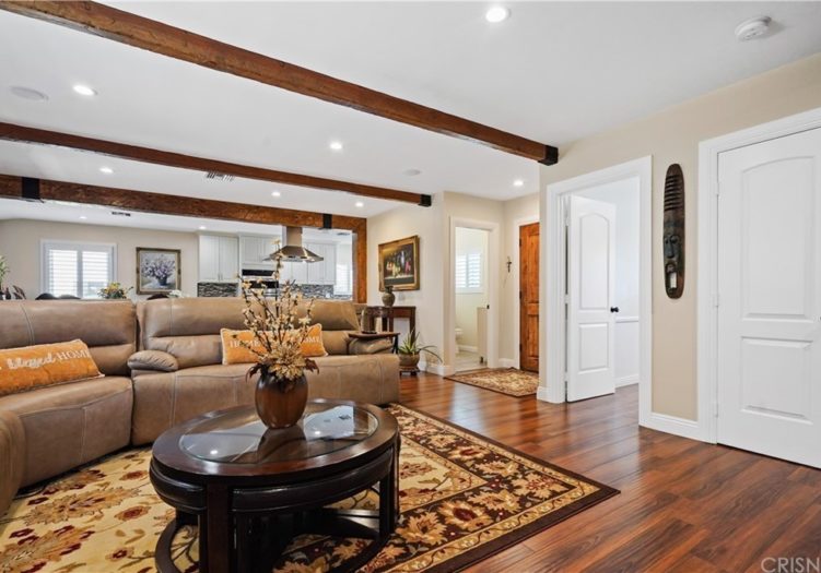 Stunning family home Remodeled throughout with attention to detail! Situated in a desirable "North Hills West" neighborhood, this captivating home will exceed your expectations! The redesigned floor plan offers 1,854 sq.ft. of open living space, three bedrooms, three bathrooms, 7,548 sq.ft. lot, dual pane windows, copper plumbing, upgraded 200 amp electrical panel, central air/heat, plantation shutters throughout, recessed lighting throughout, raised panel doors and rich wood floors. The inviting entryway with a Guest Bathroom welcomes you into a spacious and light floor plan featuring an elegant Living room with distressed wood beams, central sound system, a handsome stacked stone fireplace with raised hearth and custom mantle. The remodeled Gourmet Kitchen offers granite counter tops with custom backsplash, stainless steel appliances, soft close drawers, a large pantry, a breakfast bar and adjacent dining room. The Luxurious Master Suite offers recessed lighting, a walk-in closet, an en-suite bathroom with custom dual sink vanity, a linen closet, a sumptuous spa tub, a custom walk-in shower with seamless glass door with elegant fixtures. The Hallway Bathroom includes a custom dual sink vanity, a gorgeous custom walk-in shower and fine tile flooring. The two additional family bedrooms are generous in size with generous closet space, recessed lighting and plantation shutters. Entertainer's backyard is complete with a cozy enclosed patio, a great place for a morning coffee or reading your favorite book, an additional patio with Saltillo tiles perfect for outdoor dining, a Pizza oven, a BBQ, fruit trees, a vegetable garden and a grassy area. There is an indoor laundry room with gas dryer hook up, storage, a utility sink and direct access into the two car garage with custom garage door and automatic door opener. The most perfect home to make new memories with family and friends.